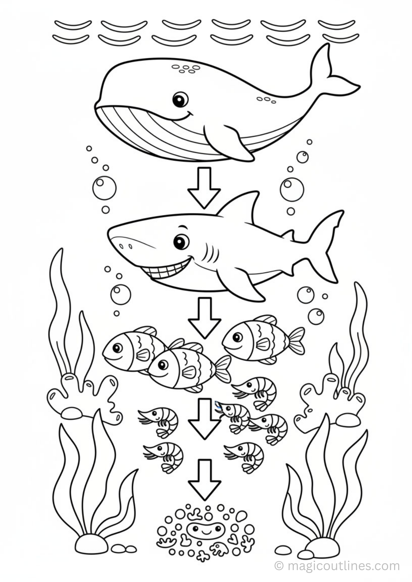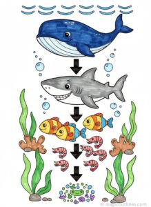 This Ocean Food Chain coloring page printable in A4 size helps children understand how marine animals depend on each other for survival. Featuring simple sea creatures arranged in a clear food chain, this educational coloring page supports early science learning, creativity, and visual understanding. Easy to print and perfect for classrooms, homeschooling, and fun learning at home.