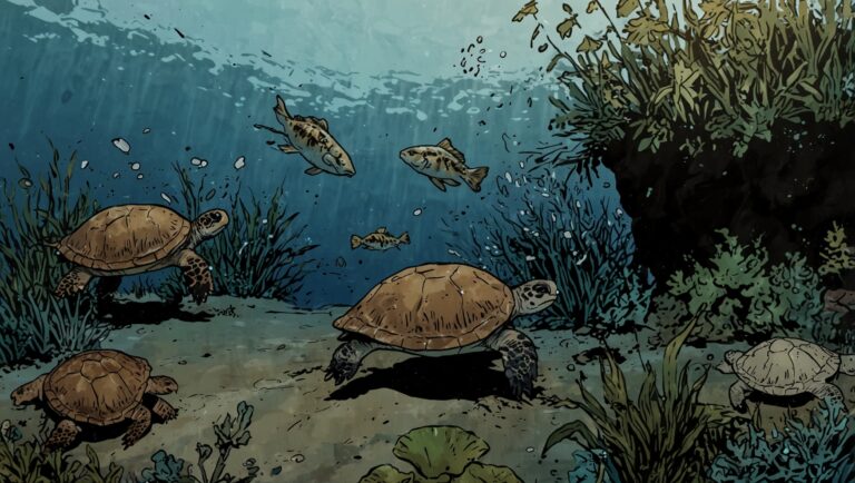 As they swam back together, Coral looked around. The deep water wasn’t scary anymore—it was actually full of amazing things! There were friendly turtles, swaying sea plants, and schools of fish dancing together.