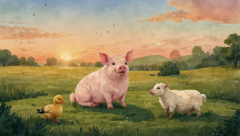 As the sun set behind the barn, Pip sat with his friends, happy and calm.