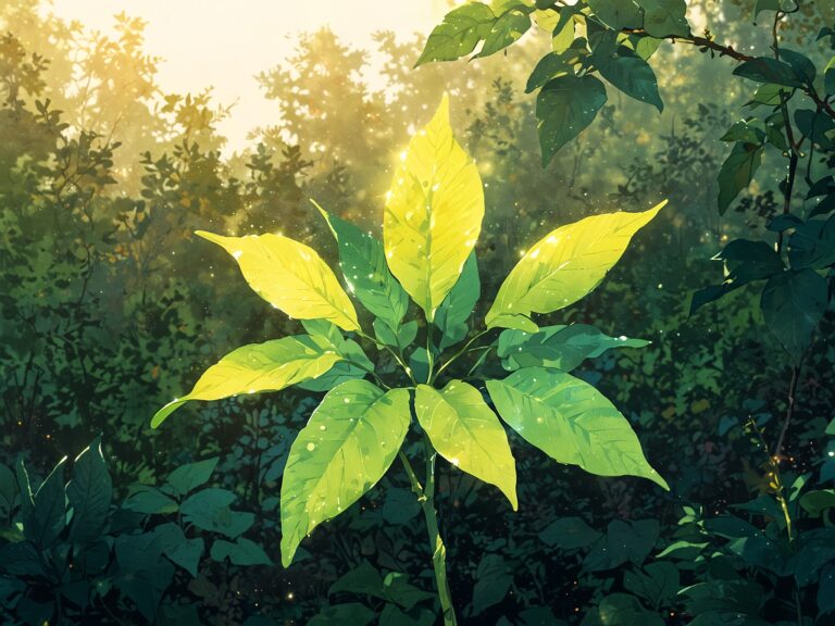 It was a bunch of bright green leaves that looked like they were sparkling in the sunlight.