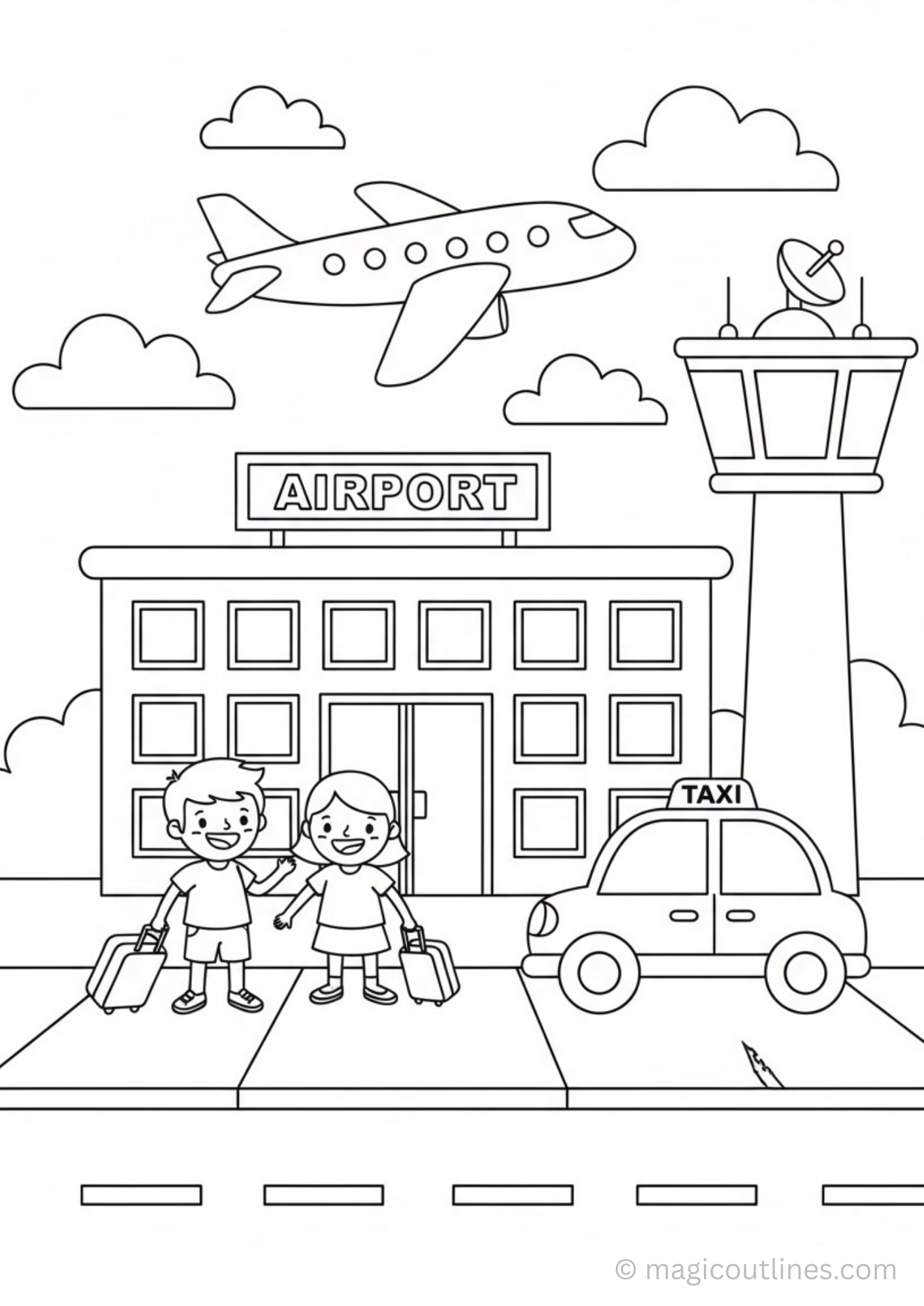 ✈️Airport Coloring Page – Free Printable A4 for Kids