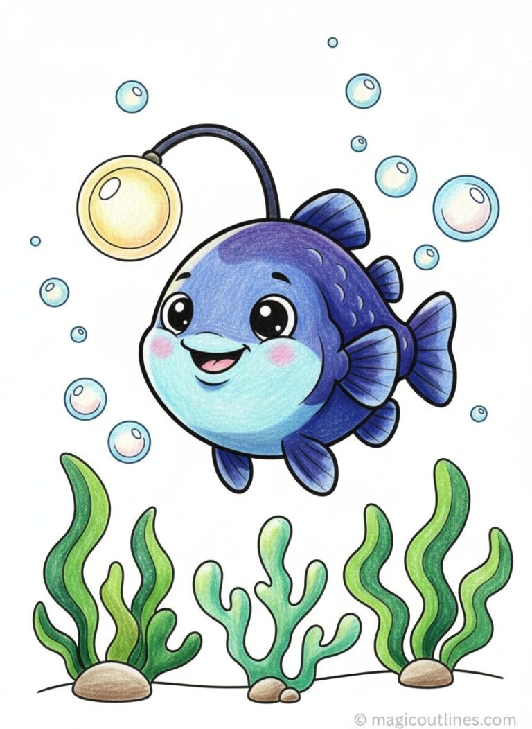 Anglerfish with Glowing Light Coloring Page – Deep Sea Learning Fun