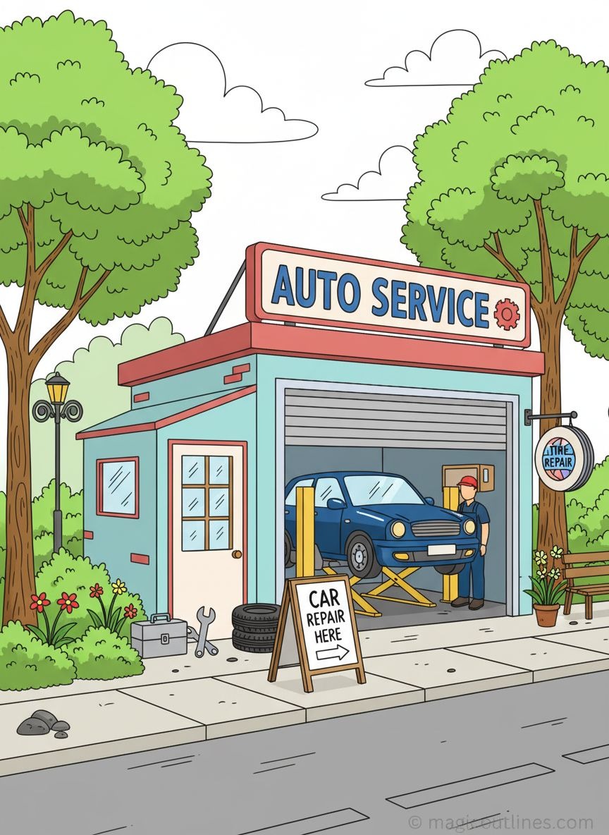 🧑🔧"Auto Service Station coloring page free printable"