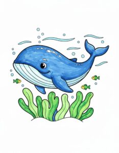 This Big Blue Whale coloring page printable in A4 size features a friendly blue whale swimming in the ocean, along with a marker coloring reference to help kids choose colors easily. Designed especially for young children, this page supports creativity, color recognition, and fine motor skills while offering a calm and joyful coloring experience. It is easy to print and perfect for both home and classroom use.