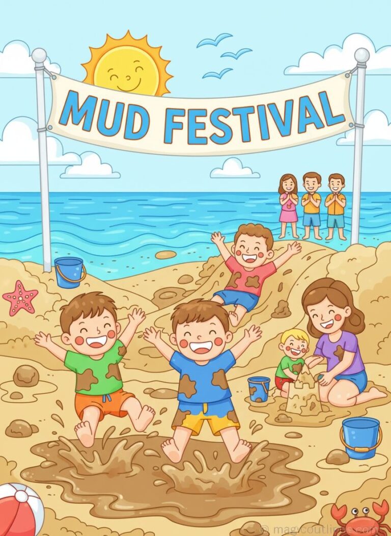 Boryeong Mud Festival Coloring Page – Free Printable Festival Activity for Kids