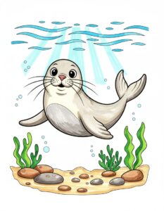 Cute Seal Swimming Underwater- Free Coloring Pages