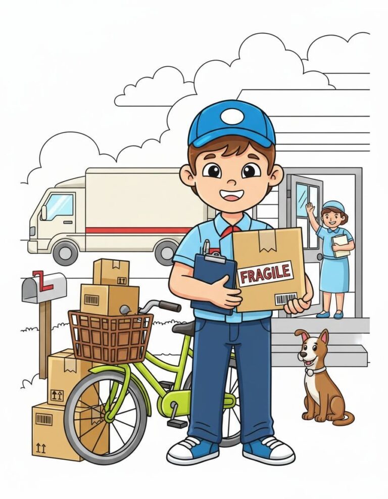 Delivery Boy Coloring Page – Free Courier Printable for Kids