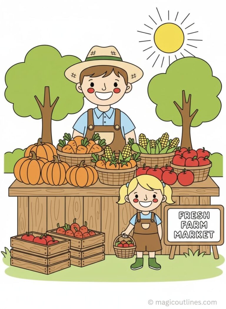 Farmer Market Coloring Page – Free Printable Farm Activity for Kids