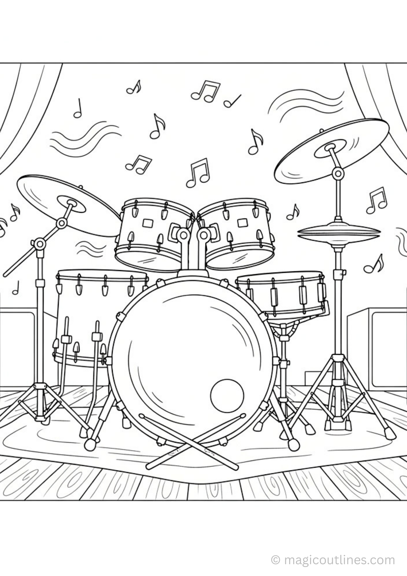 🥁 Full Drum Set Coloring Page Printable PDF