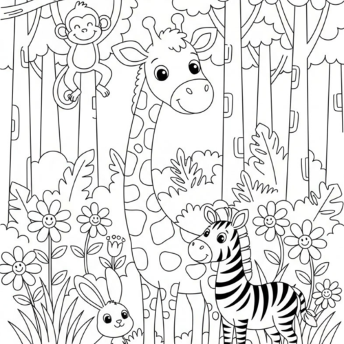 In a bright, sunny jungle lived a little giraffe named Gina.
