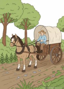 This horse cart coloring page for kids beautifully represents traditional rural transportation used in villages. The illustration features a horse pulling a wooden cart, often seen on village roads, farms, and countryside paths. Designed with clear outlines and balanced details, this printable coloring page is perfect for young children.