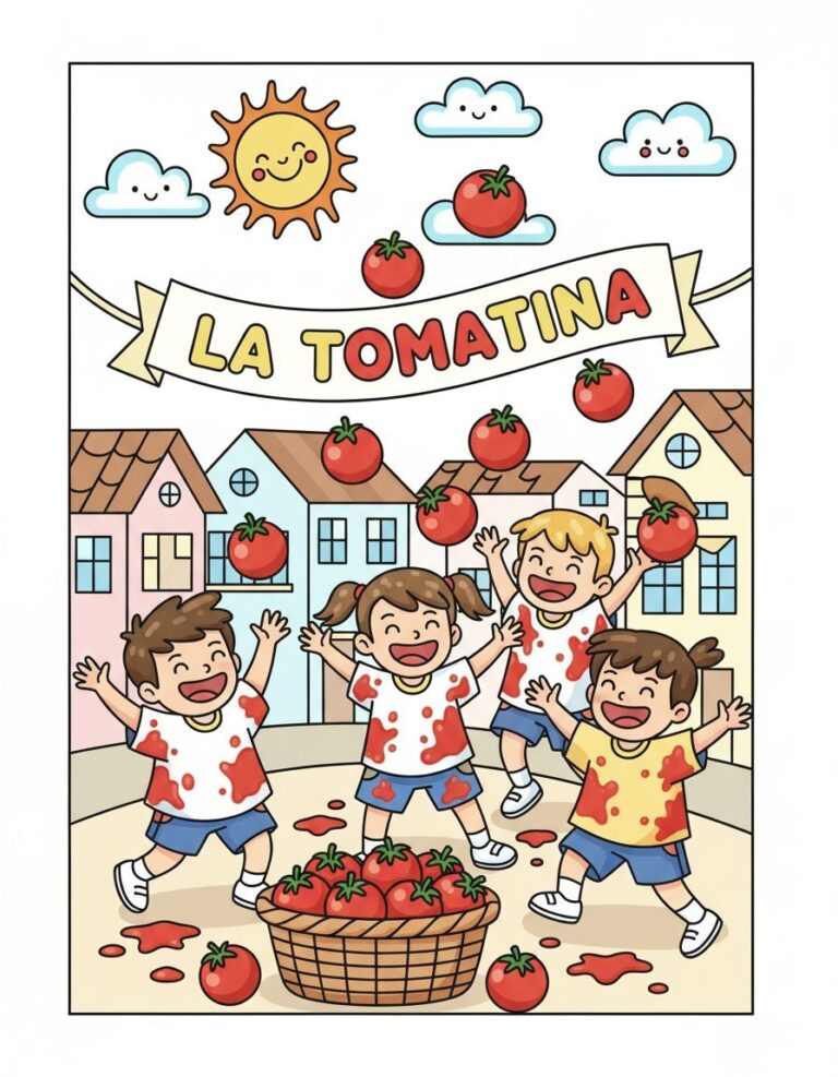 La Tomatina Festival Coloring Page – Free Printable Tomato Festival Activity for Kids