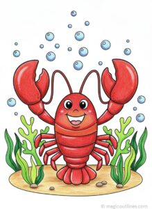 This Lobster with Big Claws coloring page printable in A4 size features a cute lobster with big claws in a fun underwater scene, along with a crayon coloring reference to help kids choose bright and happy colors easily. Designed especially for young children, this page supports creativity, color recognition, and fine motor skills while offering a calm and joyful coloring experience. It is easy to print and perfect for both home and classroom use.