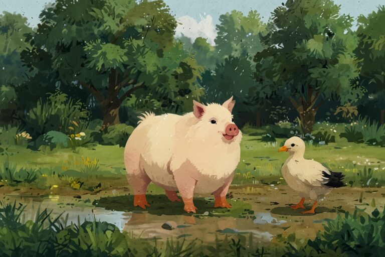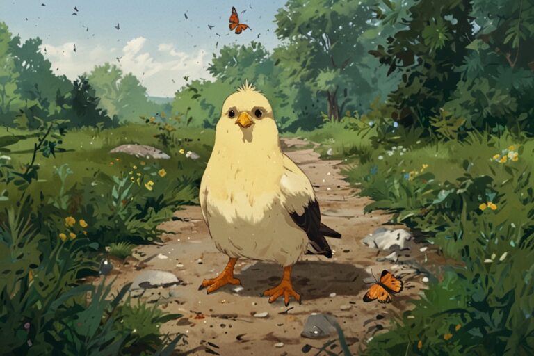 One morning, a tiny yellow chick named Peep got lost. Peep had wandered too far from the coop while chasing a butterfly. “Cheep cheep! Where is Mama?” Peep cried, hiding under a bush. The other animals searched, but Peep was scared and quiet.