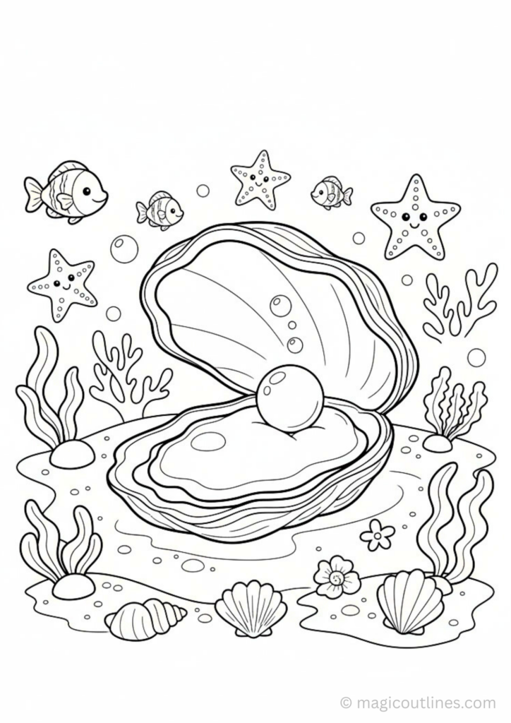 Pearl Inside an Oyster- Free Coloring Pages