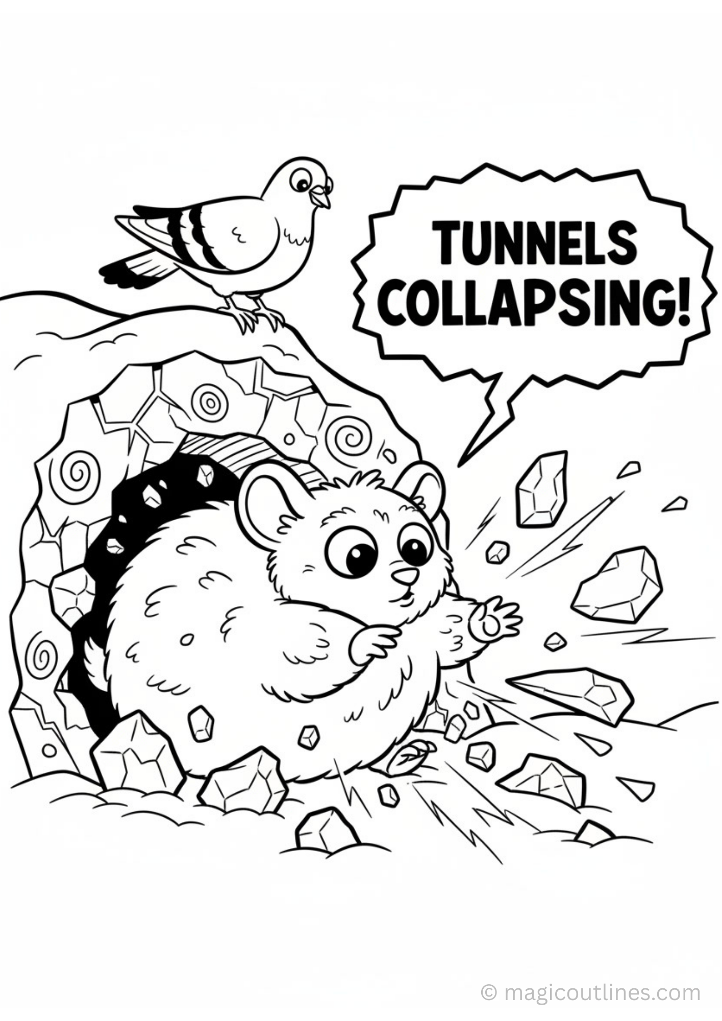 Fluffy Lemming Bursting From Snowy Tunnel Coloring Page (Free Printable