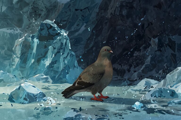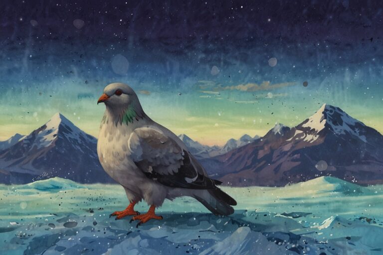 Deep in the frozen Frostfang Fjords, a plump homing pigeon named Pigeon lived among the icy cliffs and snowy winds.