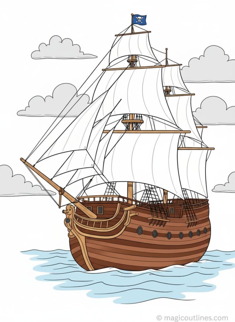 Children can imagine exciting journeys across oceans while coloring this scene. It’s a great activity that combines learning with creativity and helps kids understand how people traveled before modern ships.
