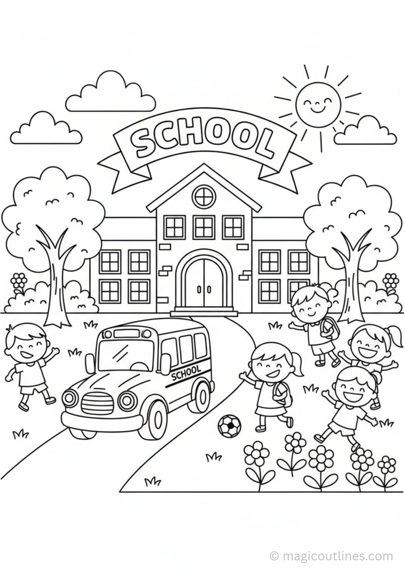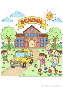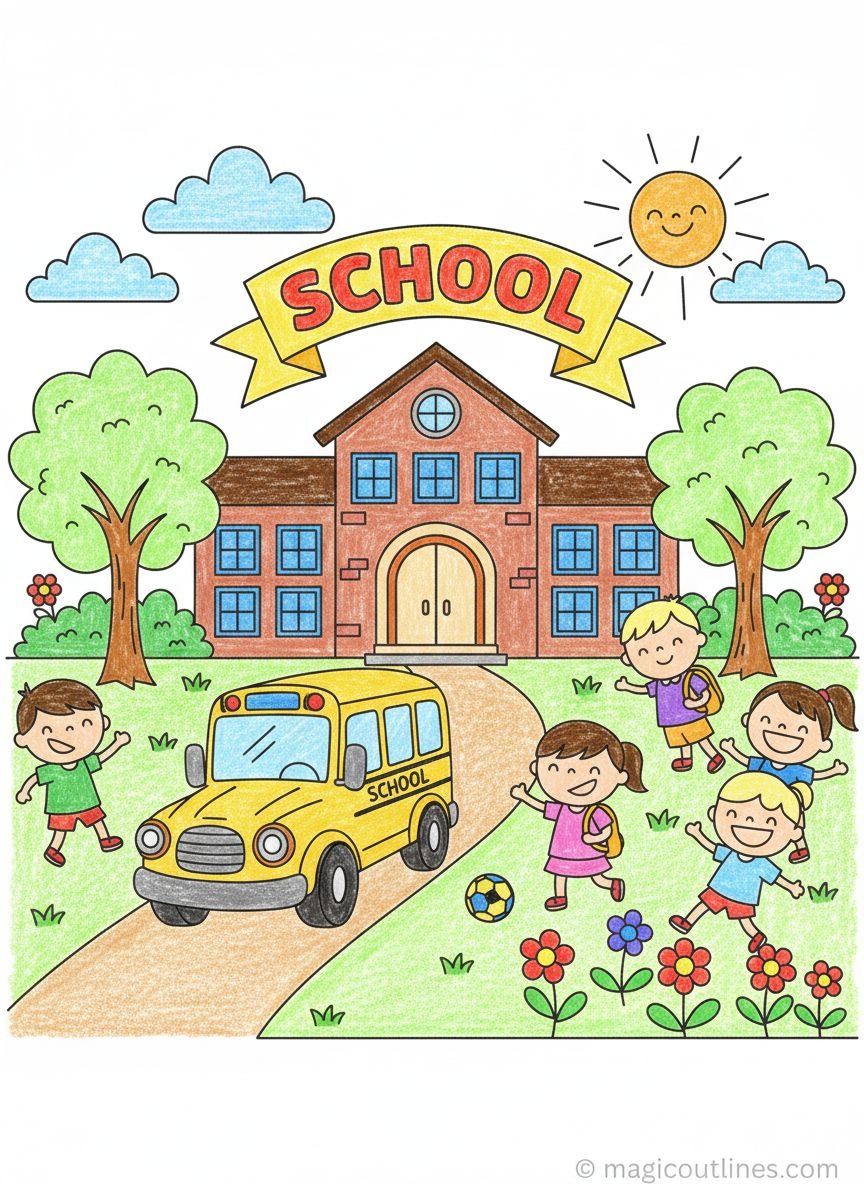School Building Coloring Page – Free Printable A4 for Kids