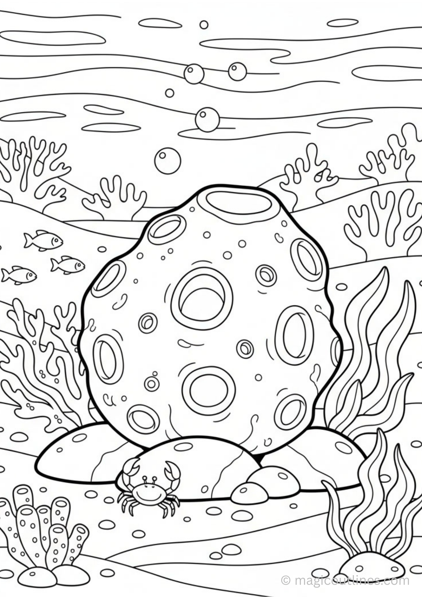 Sea Sponge Coloring Page – Free Ocean Life Printable for Kids (A4 PDF)
