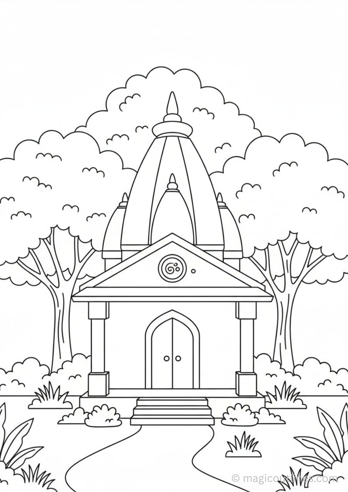 This coloring page is ideal for preschool and early school-age children, cultural learning activities, festivals, and “places around us” lessons. It offers a calm coloring experience while helping kids understand the importance of temples in everyday life.