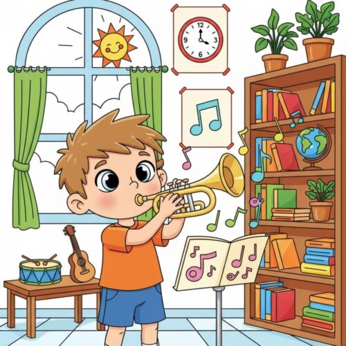 The trumpet is a popular wind musical instrument that is widely used in bands, orchestras, and music classes. This trumpet coloring page for kids introduces young learners to the exciting world of music and instruments in a fun and creative way.
